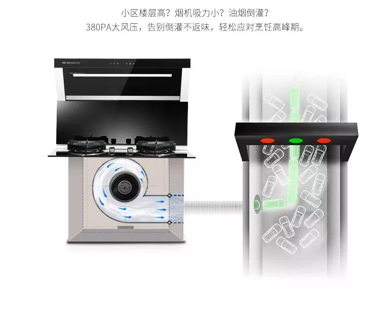 油煙產(chǎn)生后會有炸起、升騰、擴(kuò)散三個階段,那么如果油煙機(jī)能在油煙升起這個階段就將其攏住,并且吸走排出,就不會看到油煙再往上升騰、擴(kuò)散的現(xiàn)象了。
