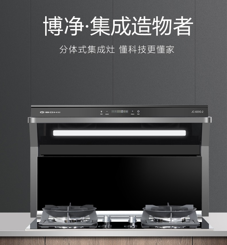 在博凈分體式集成灶的陪伴下,做飯再也不擔心油煙滿屋熏,也不擔心炒菜完清洗不完的污漬。博凈分體式集成灶能夠吸走廚房99.6%的油煙,有效解決廚房油膩的問題。還帶有頂部恒溫置物臺,帶給家人滿滿的溫暖感。一鍵智能電加熱清洗,高溫融化頑固油污,保持長久動力。