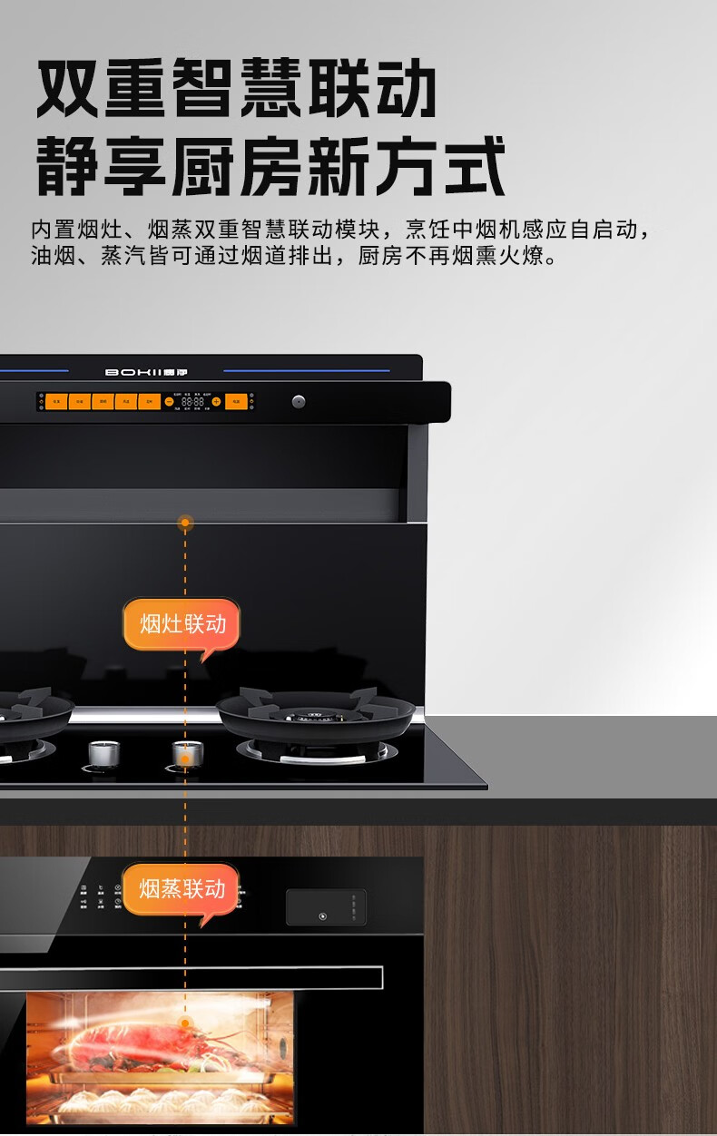 當(dāng)然,除了解決了空間利用率低的難題外,博凈分體式集成灶也與傳統(tǒng)煙機不同,采用航空級吸煙系統(tǒng),配合側(cè)吸下排的吸煙技術(shù),側(cè)吸吸煙不經(jīng)臉,打造完美綠色廚房,支持開放式廚房的格局設(shè)計,無懼油煙在開放小空間的擴散對家居和家庭健康帶來的隱患。無煙無油膩拒絕油煙對家庭空間的污染,不讓油煙“登堂入室”。