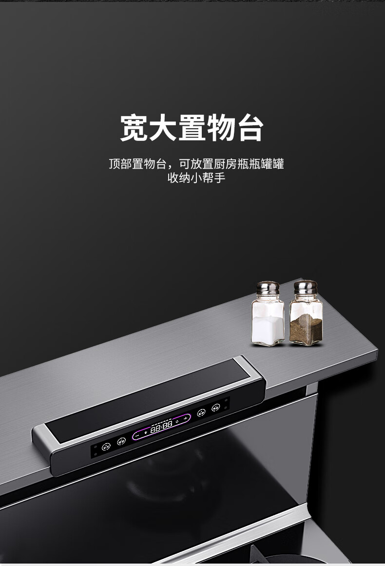 博凈分體式集成灶打破傳統(tǒng)格局,塑造新集成廚房,重新設(shè)計集成結(jié)構(gòu),在頂部設(shè)計了一個恒溫攏煙置物臺,可以放置日常的調(diào)料品和美食,增加收納空間保留剛需,釋放更多空間。