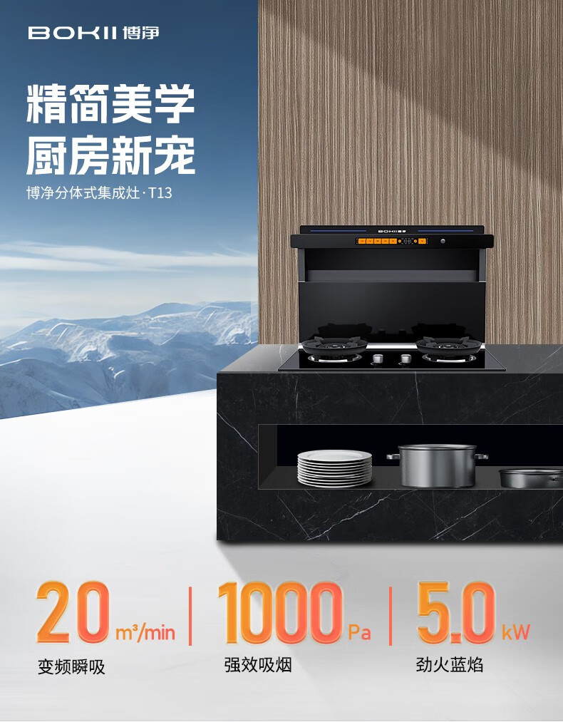 對于年輕人來說,廚房不僅是烹飪的地方,更是展示生活品質(zhì)與個(gè)性的空間。博凈分體式集成灶巧妙地將油煙機(jī)、灶具、消毒柜或蒸烤箱等功能融為一體,大大節(jié)省了廚房空間。其時(shí)尚簡約的設(shè)計(jì),更能提升廚房的整體顏值。