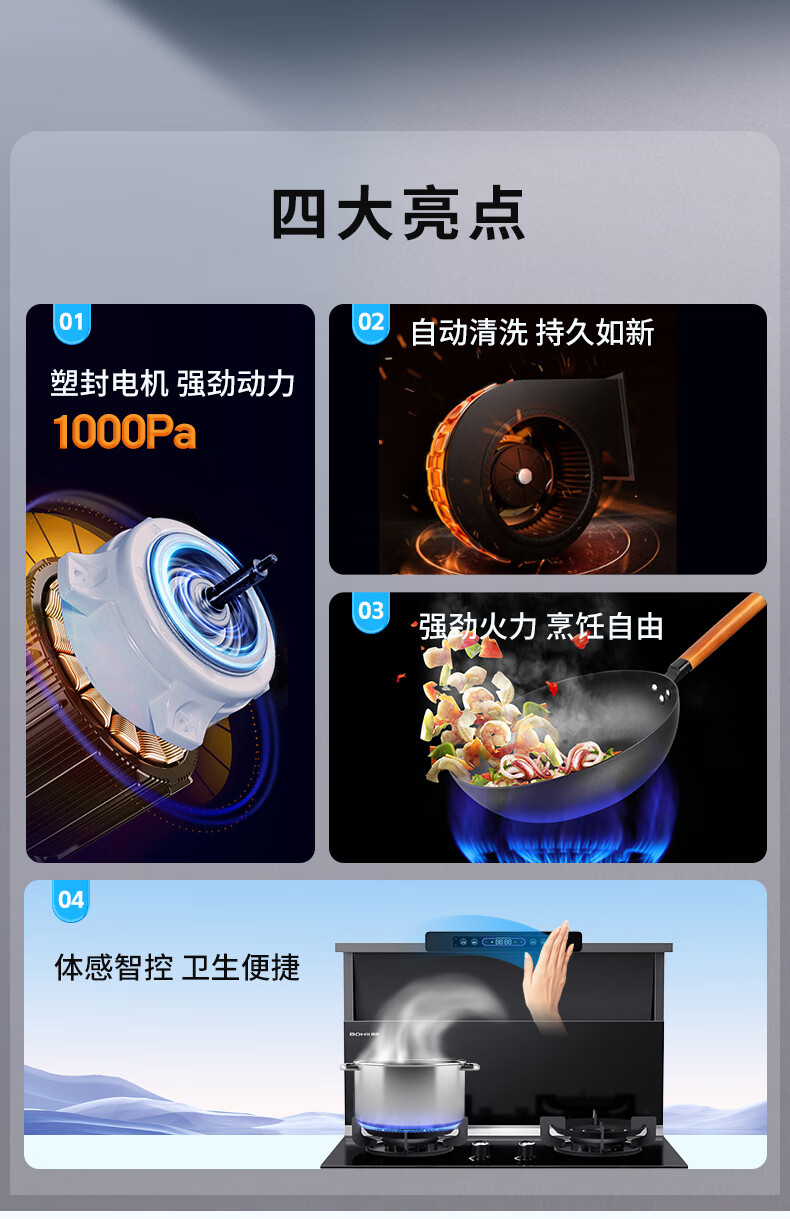 小戶型廚房面積有限,臺(tái)面自然也很難有寬余的地方。如果瓶瓶罐罐放置較多,平面上更加沒(méi)有空間。這個(gè)時(shí)候我們就可以從立面上去思考。比如把墻面利用上,裝一些收納架,把杯、鏟等雜物收納到墻上,還有使用博凈分體式集成灶的寬大置物臺(tái),這樣也可以騰出一部分的操作臺(tái)的空間,讓烹飪的時(shí)候不再左右受限。