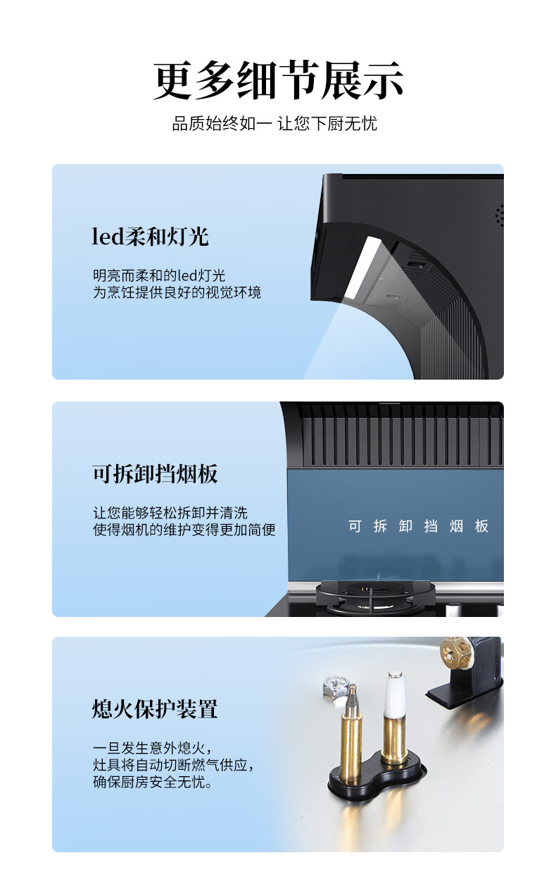 博凈分體式集成灶全銅底座、火蓋,性能穩(wěn)定,不易變形,耐高溫,使用壽命和安全性更高,經(jīng)久耐用。并且有助于燃?xì)夂脱鯕獬浞只旌希岣邿嵝?。直噴燃燒系統(tǒng),預(yù)混內(nèi)燃技術(shù),集中出火口,強(qiáng)勁循環(huán)進(jìn)風(fēng),高效節(jié)能,提高熱效率。 勁藍(lán)焰火,內(nèi)環(huán)小火,穩(wěn)定不易熄滅;中環(huán)均勻火,包圍鍋底受熱更均勻;外環(huán)大火,范圍廣、加熱快。大火夠猛、小火更穩(wěn),滿(mǎn)足用戶(hù)多種需求。 選博凈分體式集成灶,既能滿(mǎn)足火力的需求,又能保證健康,最重要的是把油煙全部消滅!這樣的廚房安全、有品質(zhì)、無(wú)油煙、更健康。