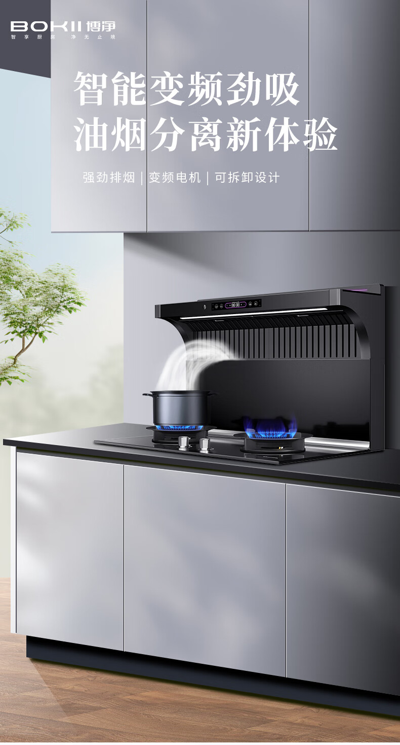 博凈分體式集成灶煙機部分超大的風(fēng)量、風(fēng)壓,做到油煙瞬吸;灶具部分5.0kw火力,且雙灶1~99分鐘定時;簡約時尚,且非常好清潔。選擇一臺=多臺的廚房電器,讓我們避免臺面亂糟糟的場景。