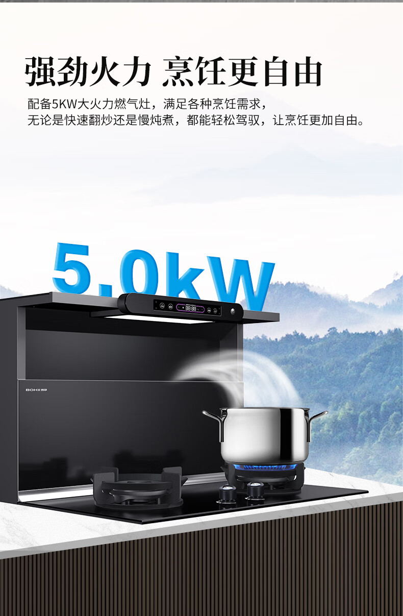 博凈分體式集成灶徹底根除油煙難題。以開放式廚房為例,這種布局雖然能夠打破空間限制,放大視覺(jué)效果,但吸油煙產(chǎn)品的選擇至關(guān)重要。如果吸油煙設(shè)備不給力,加上空間狹小,廚房油煙問(wèn)題會(huì)更加嚴(yán)重。而博凈分體式集成灶憑借其強(qiáng)大的吸油煙能力,讓用戶可以放心大膽地打造開放式廚房。廚房的空間通常較為有限,如何在有限的空間內(nèi)實(shí)現(xiàn)高效的操作和充足的收納,是廚房裝修的關(guān)鍵問(wèn)題。傳統(tǒng)的廚房電器,如吸油煙機(jī)、燃?xì)庠罹叩?,各自?dú)立擺放,不僅占用了大量的空間,還使得廚房顯得雜亂無(wú)章。